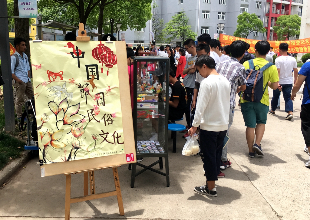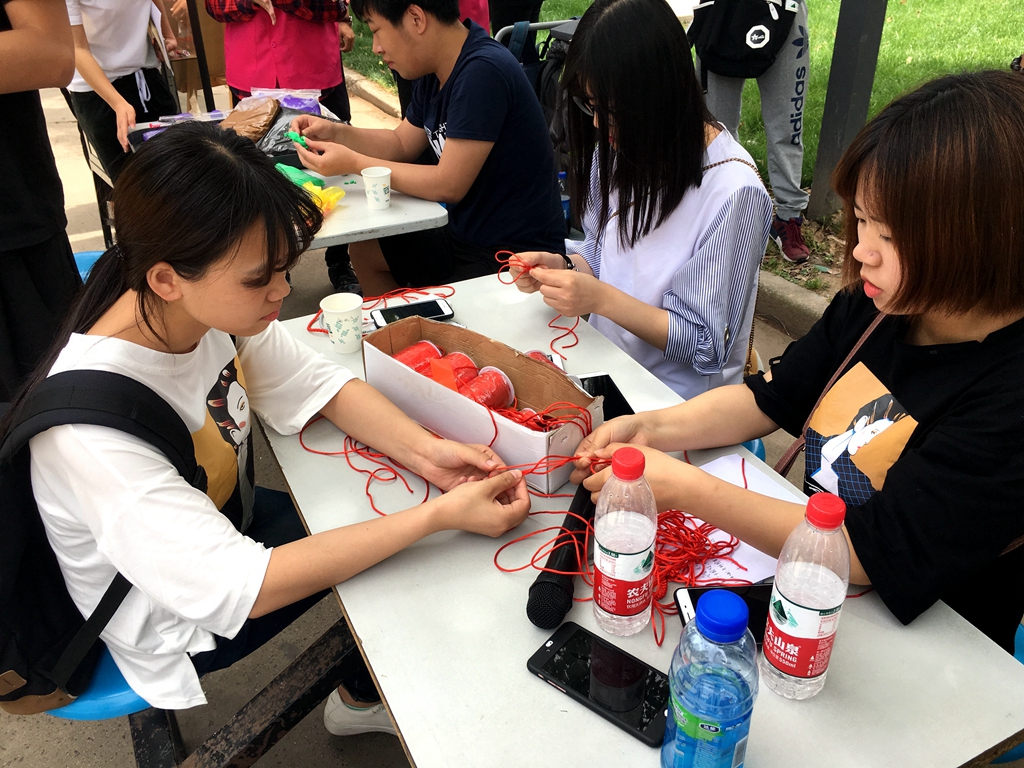 2017年5月24日,设计与艺术学院在生活园区举办了民间民俗文化活动。活动的内容包括:泥塑、中国结以及手工皮艺的制作,参与活动的师生可以免费领取轻黏土和红色编织带,自己动手完成一件或两件作品并留存。虽然大多数师生对塑泥的技艺并不是太了解,但是在设计与艺术学院同学们的演示与讲解下,师生对塑泥产生兴趣并进行亲身体验。中国结是一种中国特有的手工编织工艺品,展现了中华文化。师生纷纷参与中国结的编织,欣赏中国传统装饰习俗,感受中国悠久的历史和审美观念。与此同时,同学们还进行了皮艺作品的展示,赢得了师生们的赞赏。